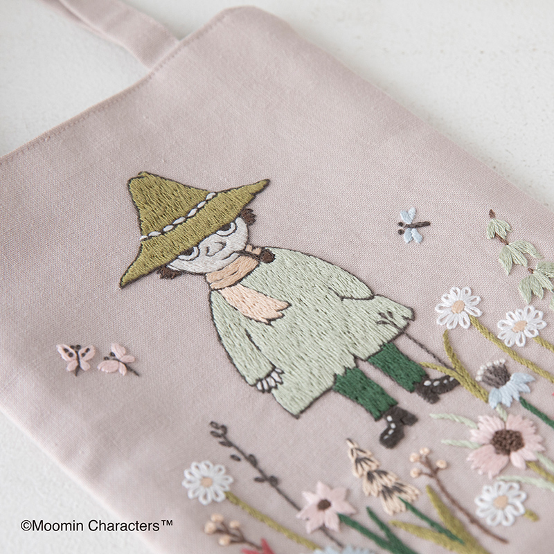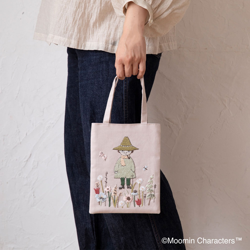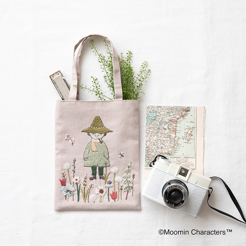 ゆれる野の花に囲まれたスナフキンがデザインされた優しい色合いのトートバッグ。 ちょっとしたおでかけにぴったりです。