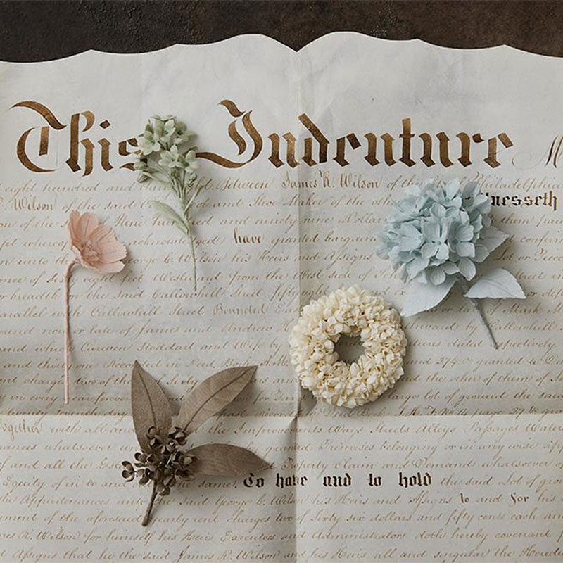 布を2枚重ねにして接着することで、パリッとして強度のある花びらを作ります。コテを使って花びらや葉に形をつけて、花の表情を豊かに表現しましょう。