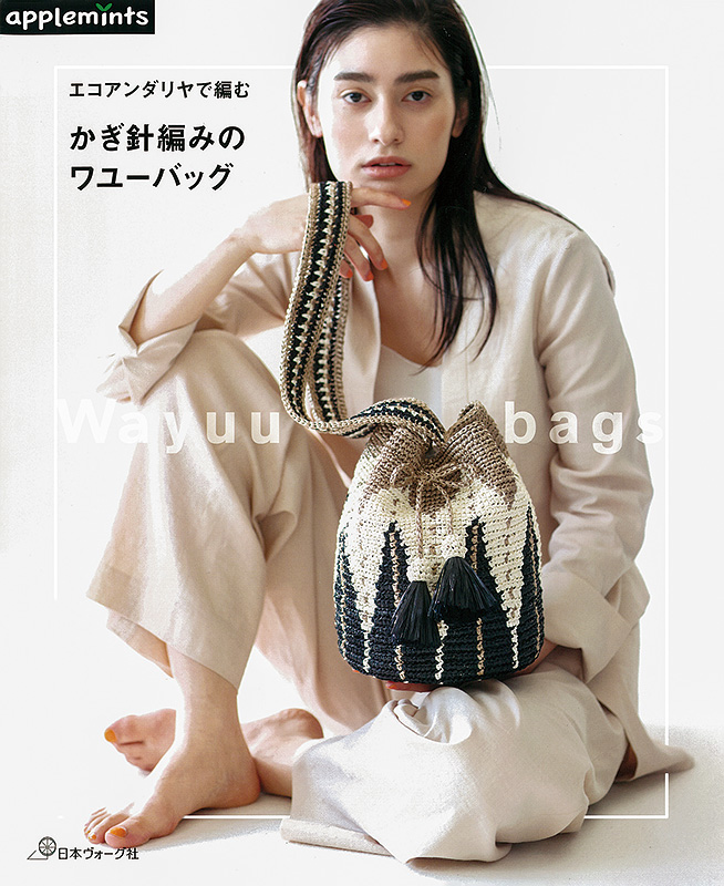 ワユーバッグとは、南米コロンビアのワユー族の女性たちが、ひと編みひと編み、完全なハンドメイドで完成させるバッグのことです。カラフルな幾何学模様と、底が丸いバケツ型の巾着バッグであることが特徴です。本書は日本人に馴染む色使いにアレンジして提案。素材はエコアンダリヤを使用。