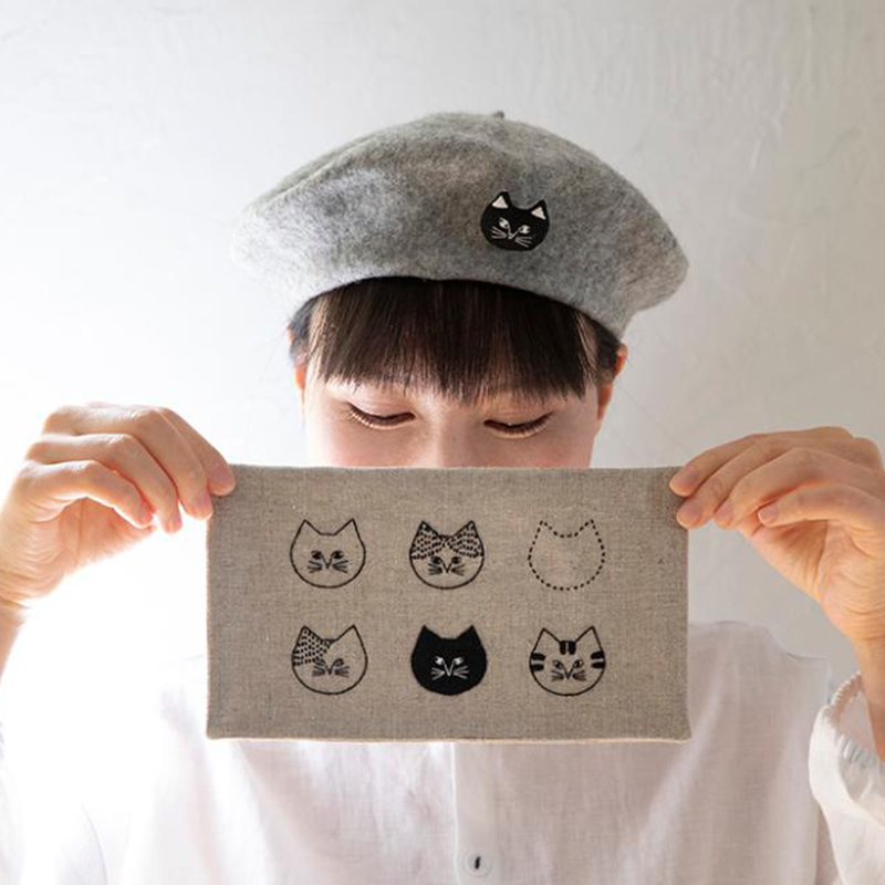 味わいのある刺しゅうとなんともいえない表情が魅力のねこが人気。
