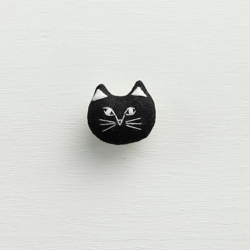 ベレーや洋服につけてもかわいいねこ顔ブローチ。