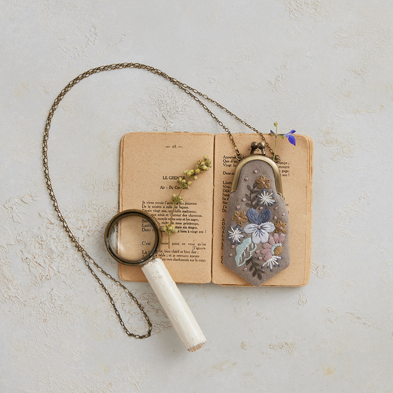 小さながま口がコロンとかわいく、乙女な気分にさせてくれます。可憐に花咲く刺繍を小さながま口。大切なものを身に着けたら、どこまでも歩いていけそう。