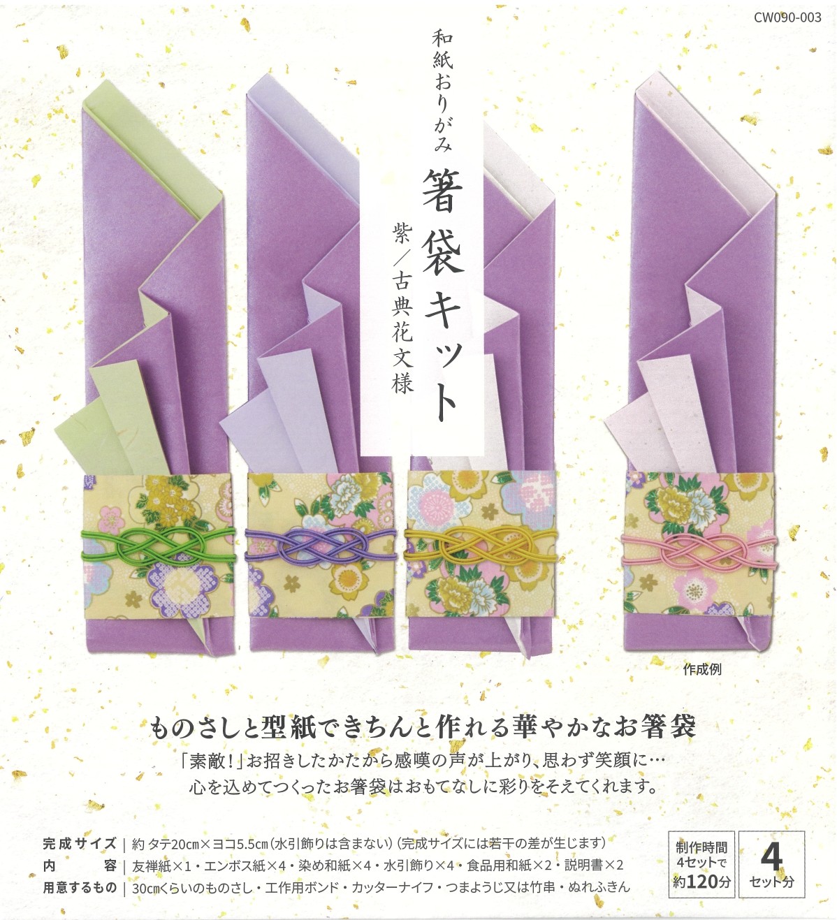 友禅紙や和紙を使って手作りの箸袋でハレの日をお祝いできます。 季節のイベントや家族、友人との集まりなど、どんな場面でも盛り上がりを見せ、 手作りが好きな方はもちろん、おもてなしを大切にする方に最適な商品です。 市販の箸袋入り箸(幅4.8cmまで)がそのまま使用できるようになっています。 (形状により一部の箸には適応できない場合もございます)