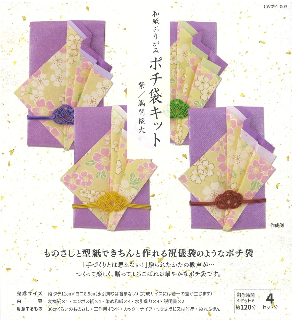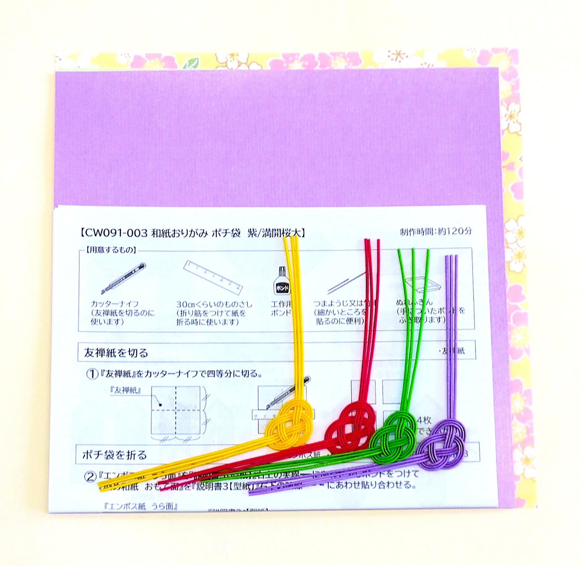 和紙おりがみポチ袋キット 紫/満開桜