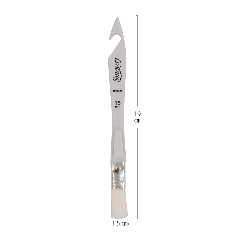 カルトナージュでグルーを塗るときに使用。化繊の毛なのでグルーが固まりにくく、コシがありグルーが塗りやすいです。フックがついているので容器に掛けておけます。