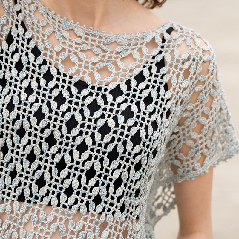 クロッシェ派にぜひおすすめしたい、ちょっと面白い模様編み。玉編みをそう使いますか!と思わずうならされます。ゆったりシルエットのプルオーバーは、カバーウエアにぴったり。いろんな着こなしを楽しんでみて。