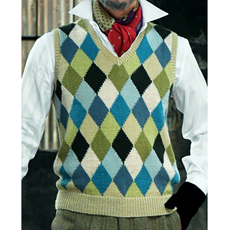 規則正しく並ぶ、アーガイルチェック。モスグリーンや緑味のブルーなど、きれいな寒色系です。ベージュ、深緑、青がアクセントになり、柔らかい配色にリズムが出ました。