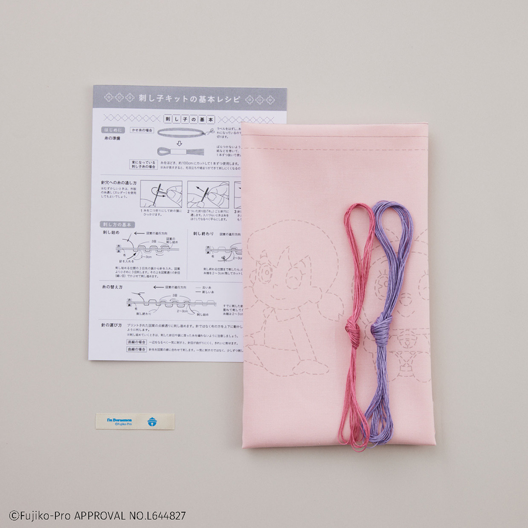 しずかちゃんとドラミちゃんと日本の伝統柄「立涌」が楽しめる刺し子キットです。 「立涌」は、水蒸気が涌き立ちのぼっていく様子が表現されており、のぼっていくということから縁起の良い柄とされています。 しずかちゃんとドラミちゃんが仲良くすわっている両脇に立涌を組み合わせて、かわいらしいランチョンマットにしました。