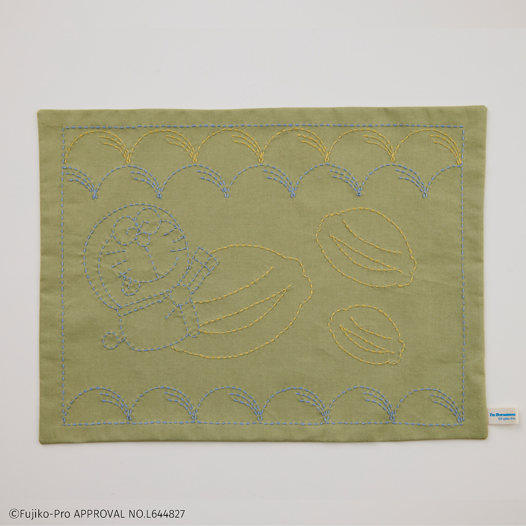 ドラえもんと日本の伝統柄「野分」が楽しめる刺し子キットです。 野に生える草が強い風に吹き分けられている日本の秋らしい風景が連想される野分。 ドラえもんの大好物のどら焼きを組み合わせて、ランチョンマットにぴったりな柄にしました。