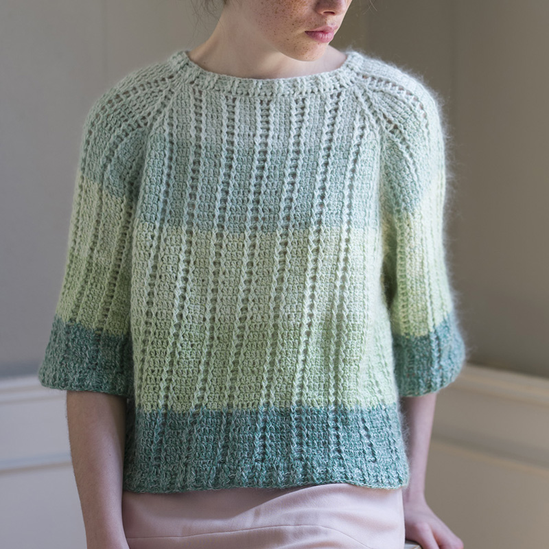 〈レシピ〉ネックから編む緑系のプルオーバー