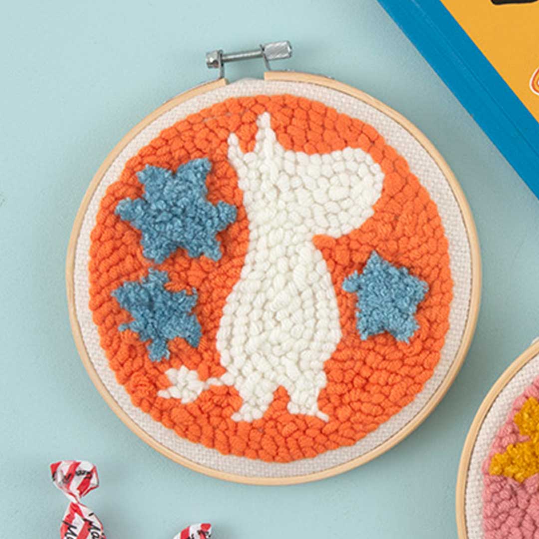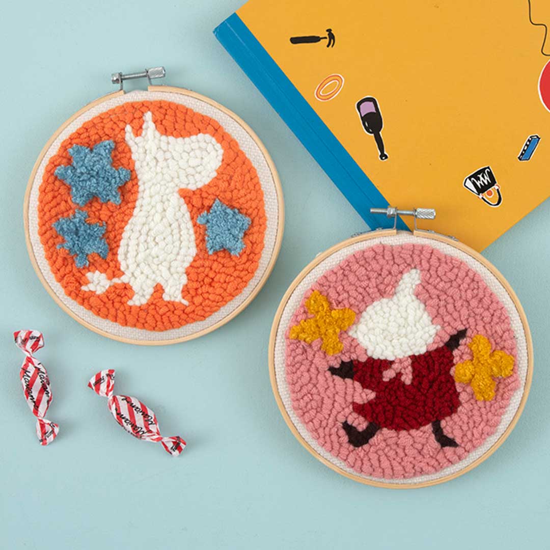 ●キット・作り方つき●パンチニードルで描くムーミンとリトルミイです。布に糸をざくざくと刺していくだけで気軽に作れます。セットの刺しゅう枠で飾っても、ポーチなどにアレンジしても。