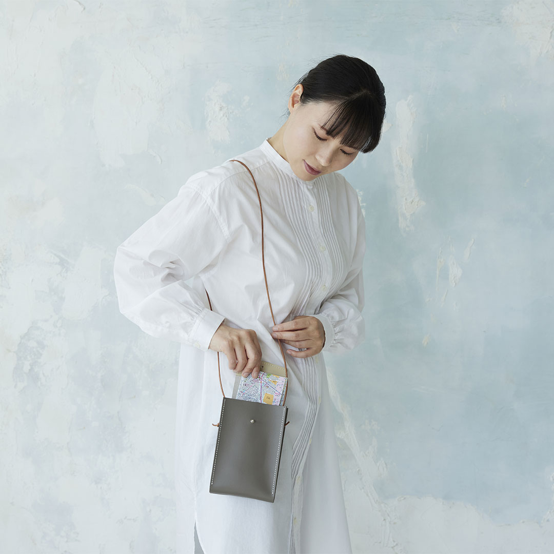 日常使いできるミニマルで洗練されたデザインが魅力の、.URUKUSTさんの革小物がご自宅で作れるレッスン。上質な牛革でバイカラーのミニポシェットを作ります。