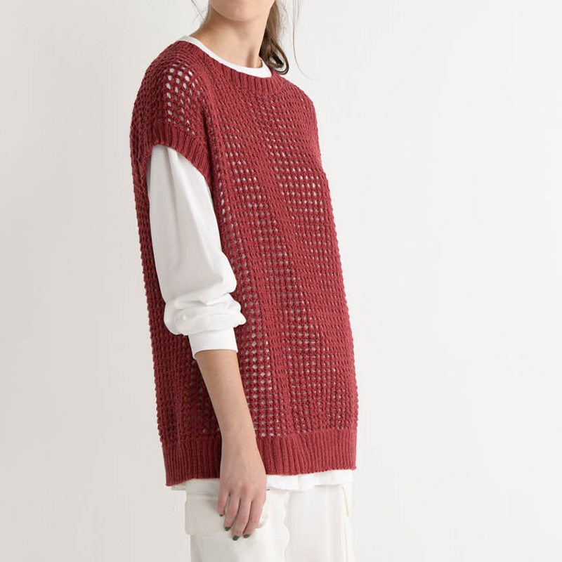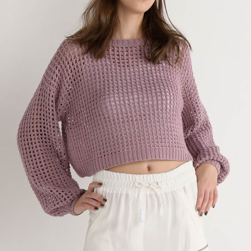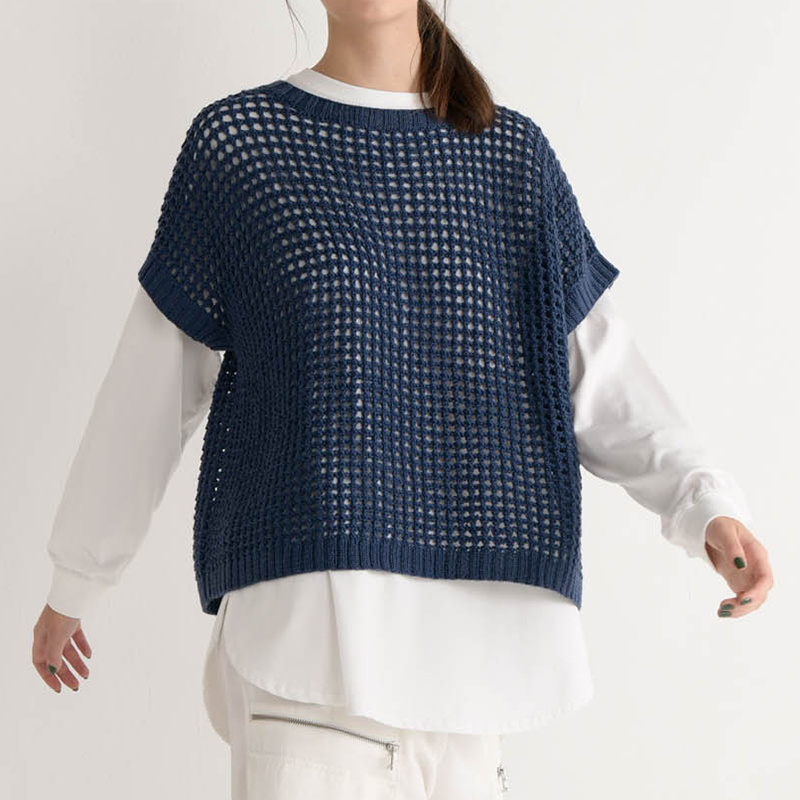 今年流行りのアイテム、メッシュのニットの色や形をアレコレ変えて。