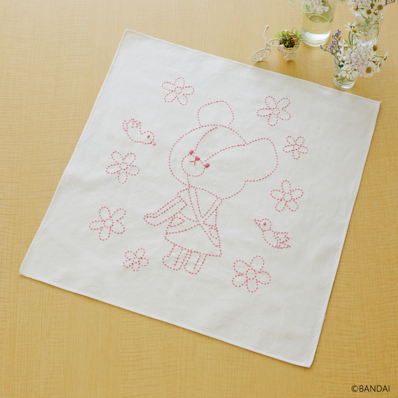 しっかりと丈夫で刺し進めやすい布を使いました。周囲はほつれないように丁寧に三つ折りで端の縫製がされています。届いたら図案にちくちく鮮やかな色で刺すだけで完成するので手間のかかる工程はなく、無心に完成させることができます。