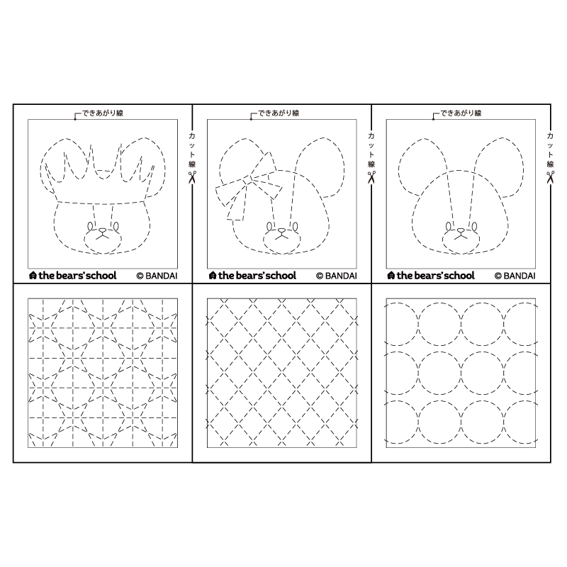 図案とともに生地のカット線と縫い代もプリントされています。片面ずつ刺し子をしたら周囲を縫って仕立てます。