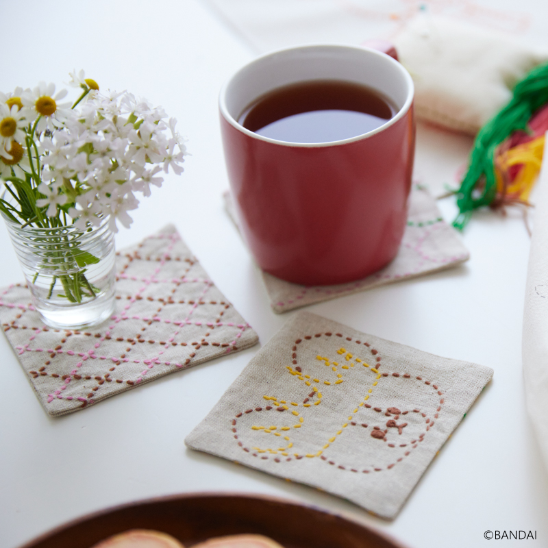 かわいいだけではなく、刺しやすく使いやすいコットンリネンの生地で仕立てます。 通気性が良く肌触りの良いコットンと、水に濡れることで強度が増し、汚れがしみにくく落としやすいリネンが入っています。 布は、漂白や染色をしていない生成りを使用しているので自然で落ち着いた色合いが、テーブルに馴染みます。 ※天然素材の為、茶などの綿カス、麻カスが見られますが自然な風合いとしてご了承ください。