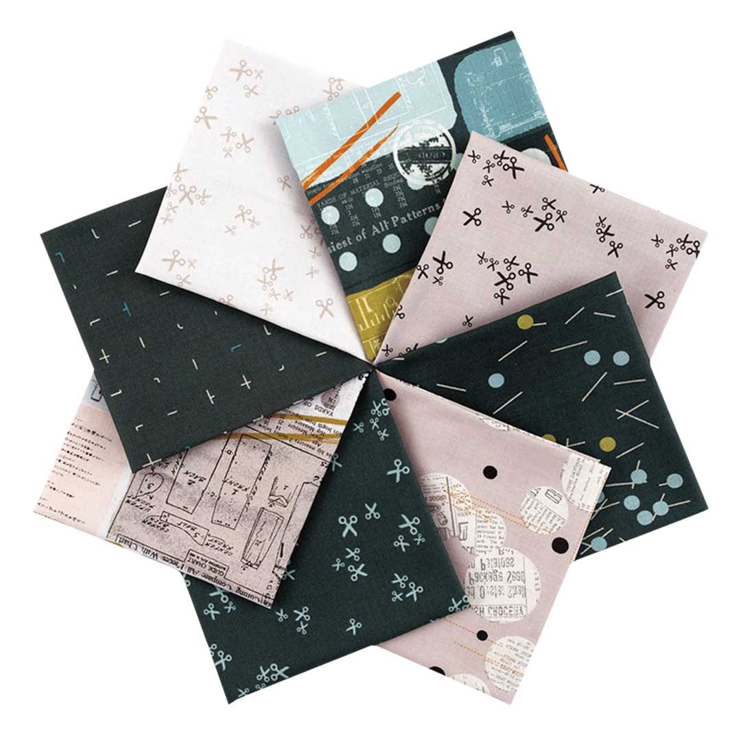 【USA】ソーイングモチーフなどをモノトーンで描いたコレクション。部分的に入れたブルーがアクセントになっています。スタイリッシュな小物作りに。