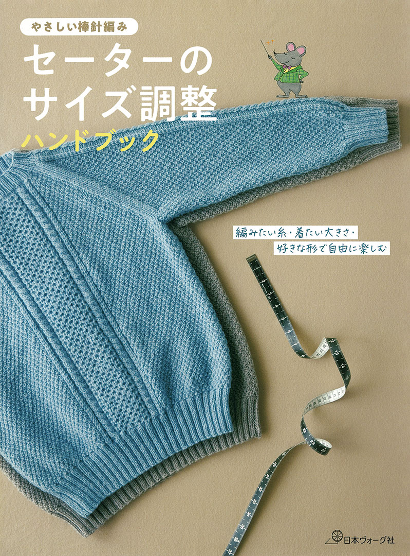棒針編みのセーターのサイズ調整を、イラストを中心にわかりやすく解説。なるべく計算したくない、製図は勉強したくないという方に向けて、最低限の計算でできる方法を紹介。5つのセーターの作品例から、それぞれの形に合わせた調整方法や、糸を変えたり形を変えたりするアレンジも展開します。