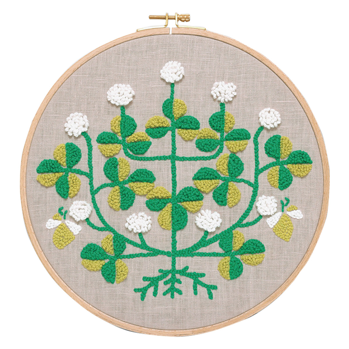 北海道を拠点としたテキスタイルブランド「点と線模様製作所」とフランスの老舗手芸メーカー「DMC」がコラボレーションしたパンチニードルのキットです。自然の風景からインスピレーションを得た草花モチーフを、パンチニードルに適した構図でデザイン。リネン100%の布に、太めのコットン糸で刺します。完成した作品はそのままインテリアとして、お部屋に飾れます。