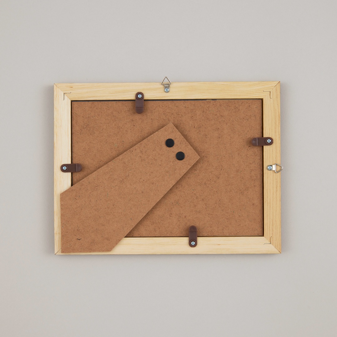 「くまのがっこう 絵本のモチーフクロスステッチ」の作品を入れるのにぴったりなフレームです。ブラウンの木材がナチュラルな雰囲気。