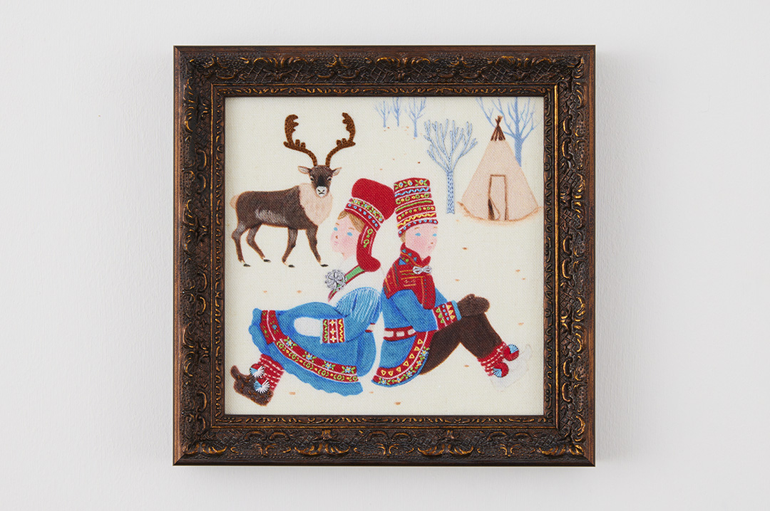 主にトナカイの放牧を生業としているサーミは、トナカイの皮と毛皮を使った靴やパンツに、袖や裾に赤を基調とした刺繍のテープが施された衣装を身に着けています。靴に付いたポンポンもとってもキュートです。