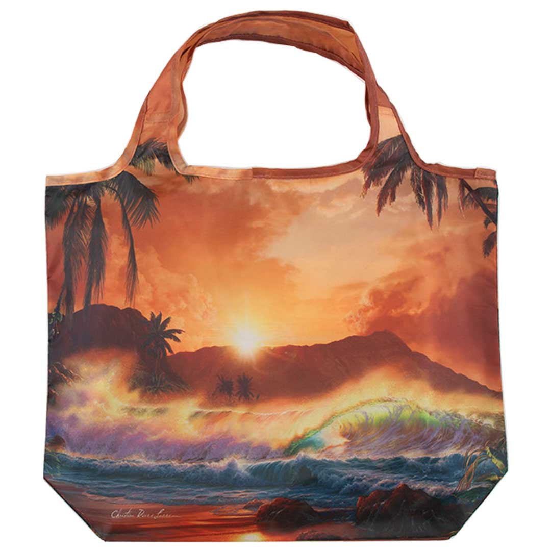 【完成品】マリンアートで知られるクリスチャン・リース・ラッセンの作品からデザイン。軽量なので、バッグに入れておけばコンビニやスーパーでのちょっとした買い物に重宝します。男性にもお勧めです。後ろも同じデザイン。