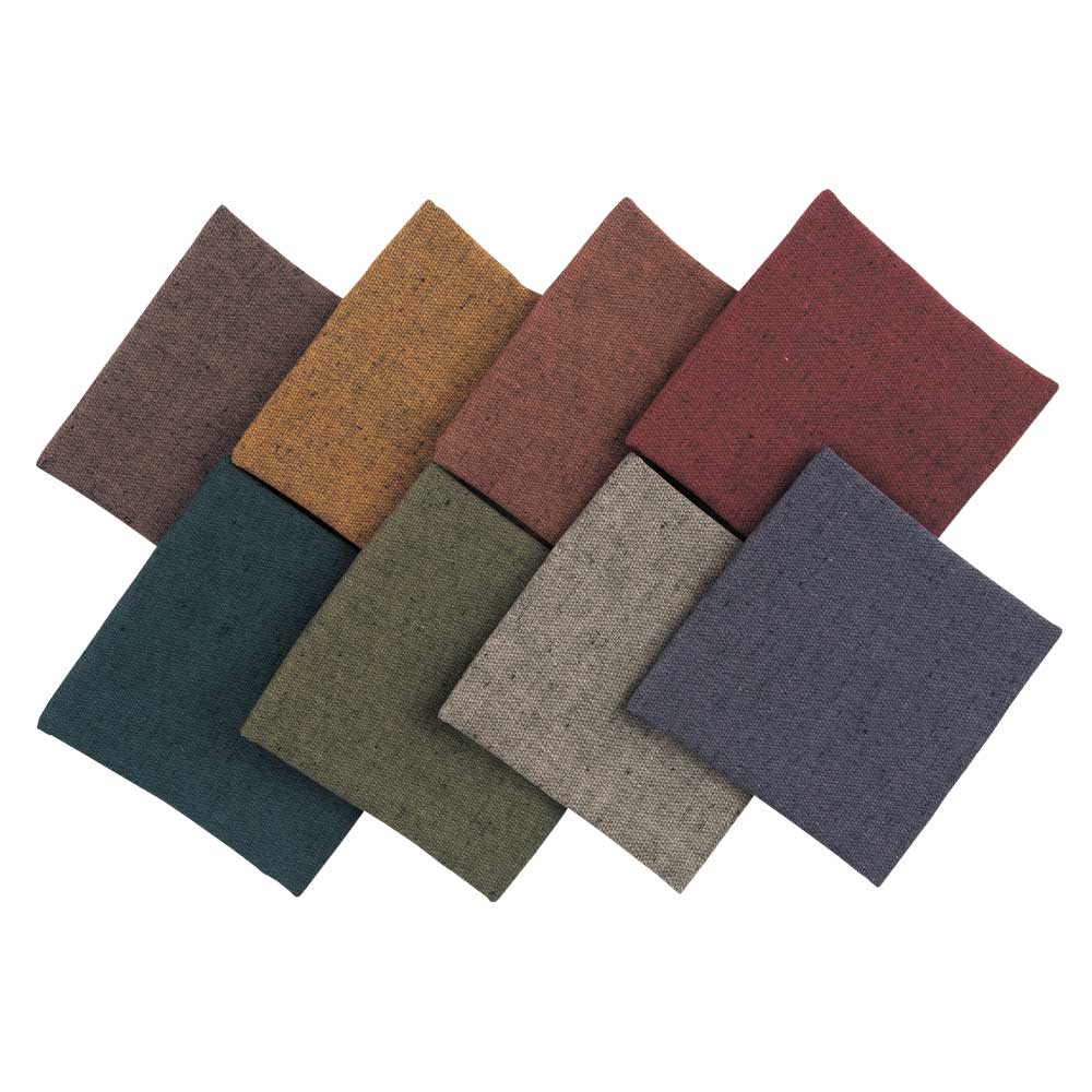 人気のネップ入り古布風布シリーズ。深みのある色で織り上げた8色は、ピース用や小物作りなどに重宝します。厚みは普通です。