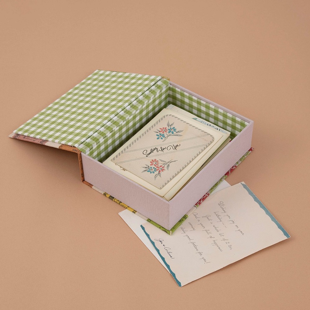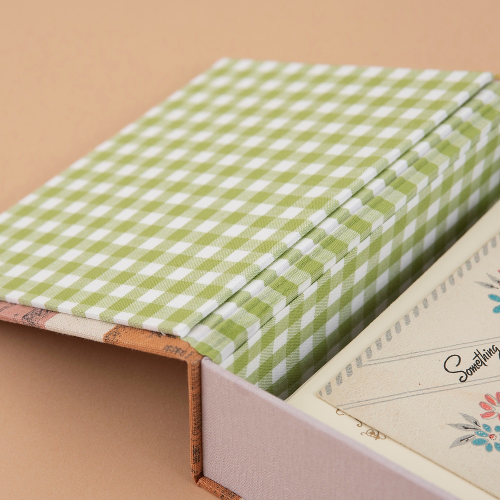 箱を組み立ててふたを取り付けるシンプルな作り方です。ふた裏には2mmの厚紙を使用するので立ててもふたが開きにくい仕様です。
