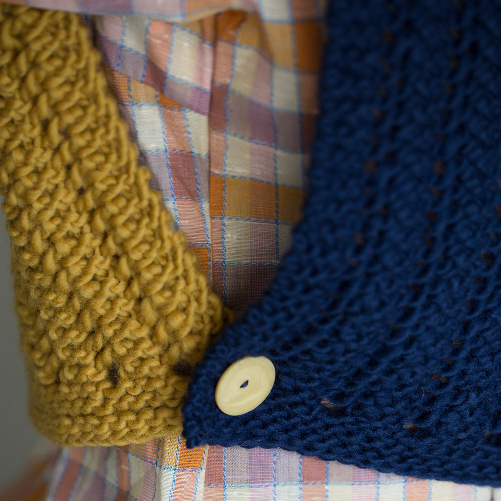 かけ目と2目一度の模様を毎段繰り返す、透かし模様で前後自由なバイカラーのベストに。「毎段操作」と聞くだけで難しそうに感じますが、編み方を文章で追っていくと意外とシンプル。太めの糸でザクザク編み進む、簡単かわいいベストです。