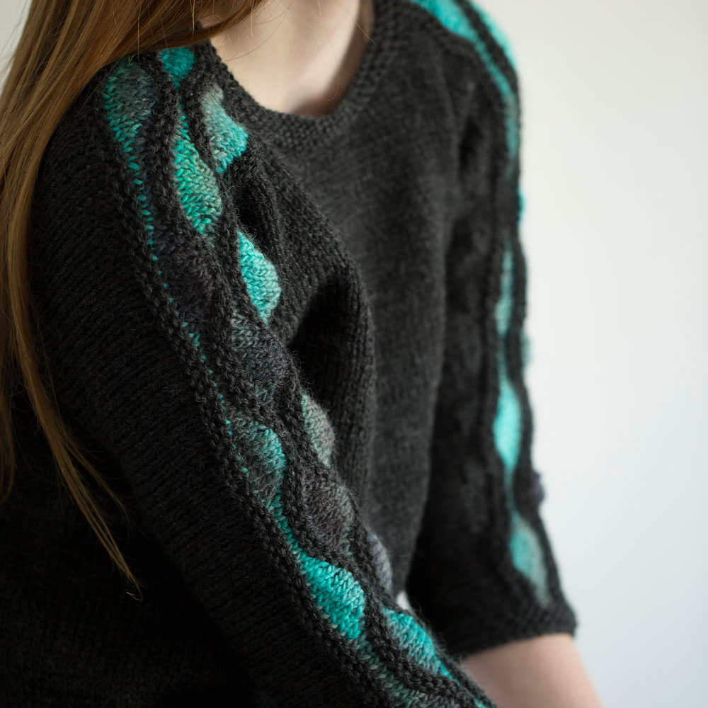 ナミナミ模様は“W&T”こと、ラップアンドターンのひき返し編みで。英文パターンといえばコレ!という技法をたっぷり練習できるレシピです。