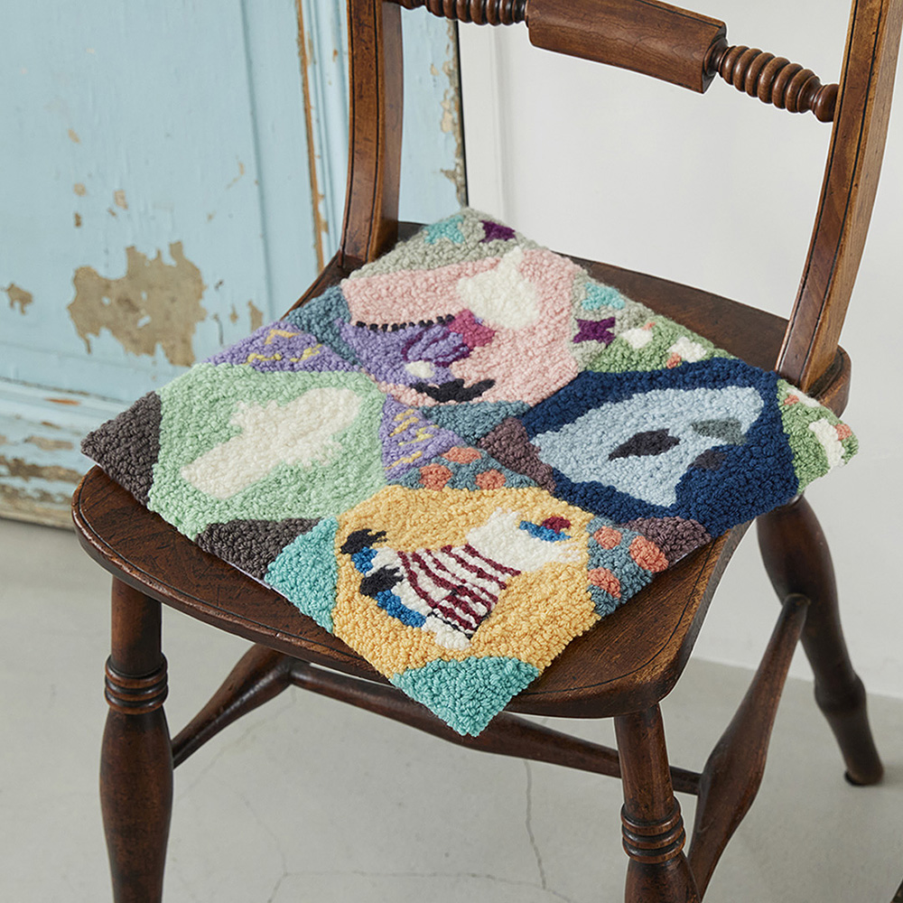 パンチニードルでデザインされた、ふわふわもこもこなムーミン谷の住人たち。1つだけでミニマットとして使ったり、いくつかつなげてミニラグやチェアマットにしたりして、ほっこりインテリアを楽しみましょう。