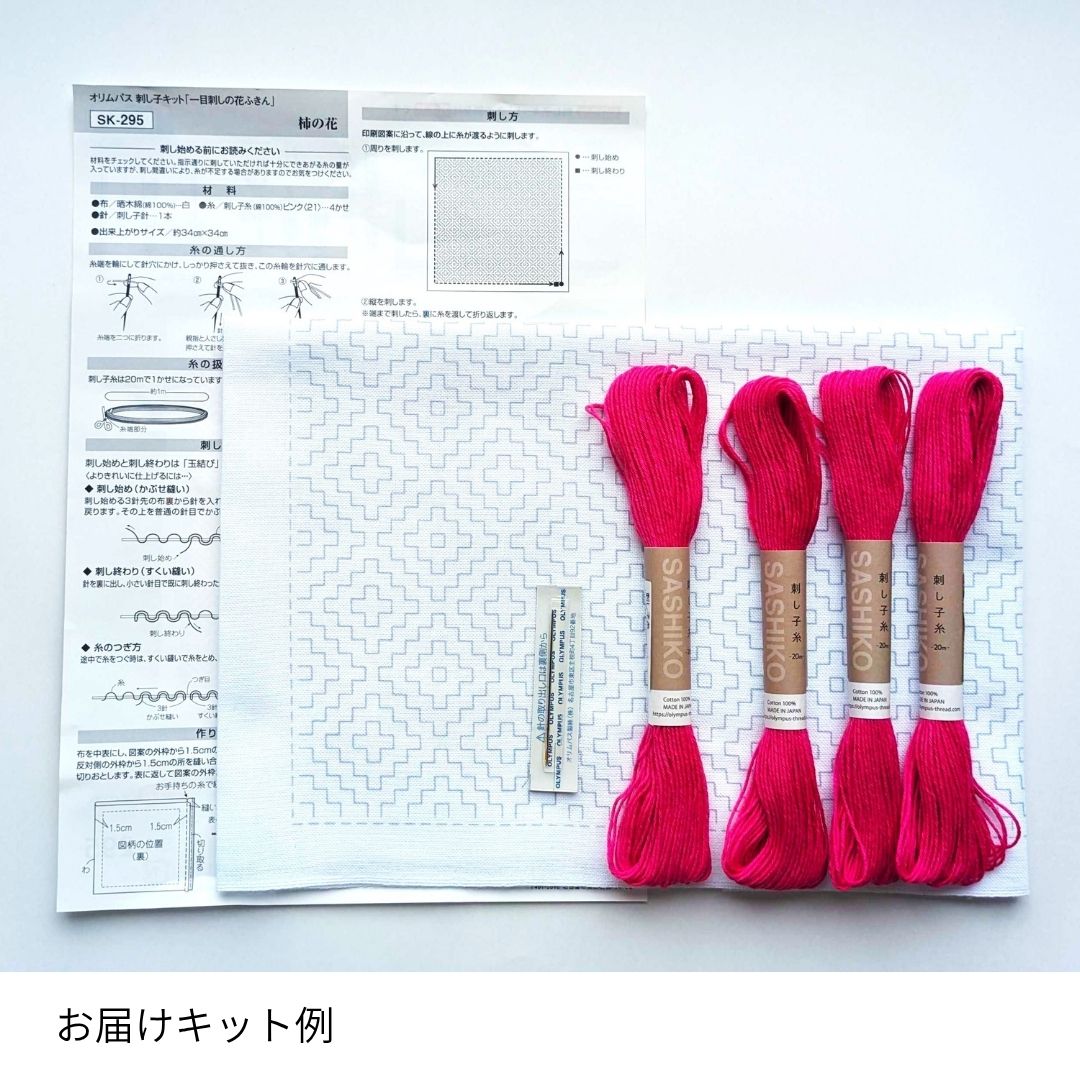 図案印刷済み晒木綿(綿100%)、刺し子糸(綿100%)、刺し子針,作り方説明書