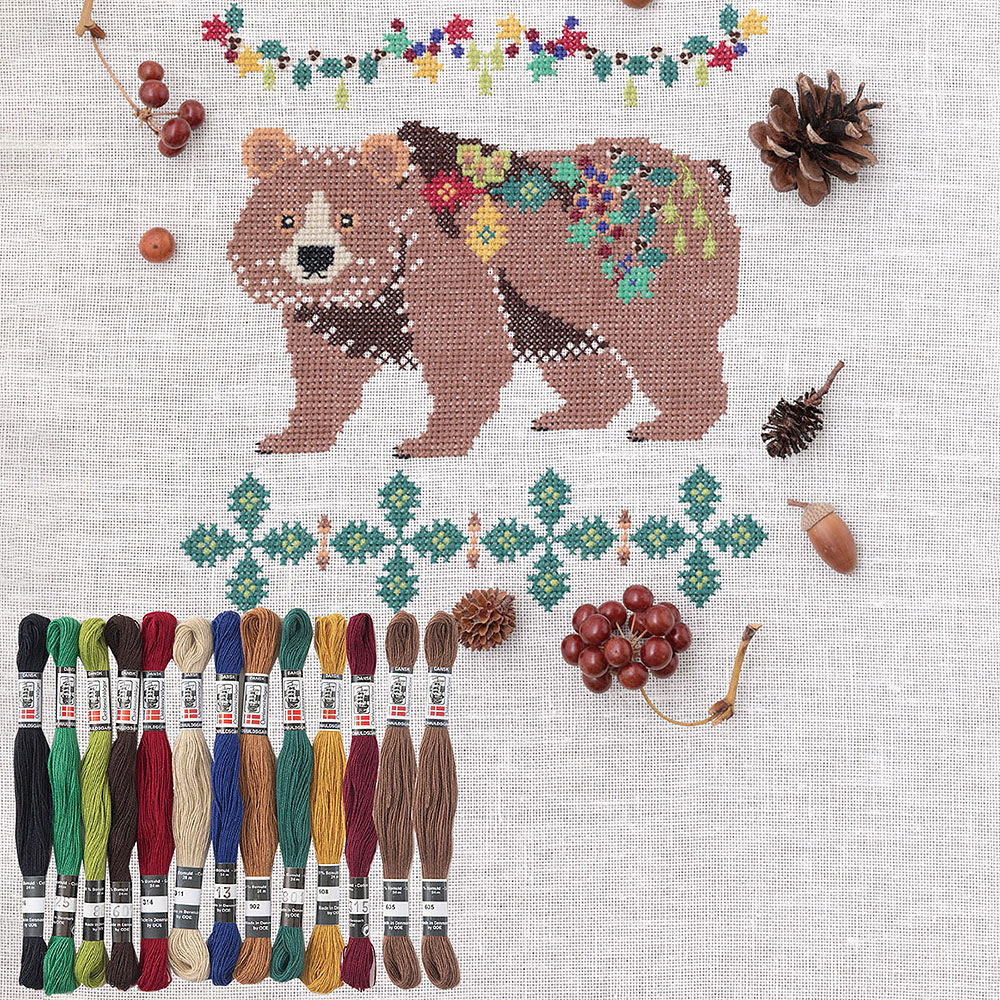 デンマークの老舗刺しゅうメーカー、O.Oehlenschlagers Eftr.Aps社(オーレンシュレーガー・通称OOE)の花糸。15ページ掲載の作品に使用した糸セットです。つやのない自然で素朴な色味と風合いが特徴です。1本撚りなのでそのまま刺しゅうすることができます。