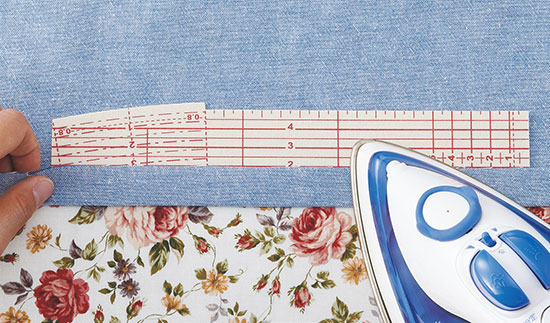 布の折り返し作業をラクにきれいに。裾上げや3つ折りなどに便利です。少し出っ張ったカーブ辺部分は、緩い曲線の折り返しに。