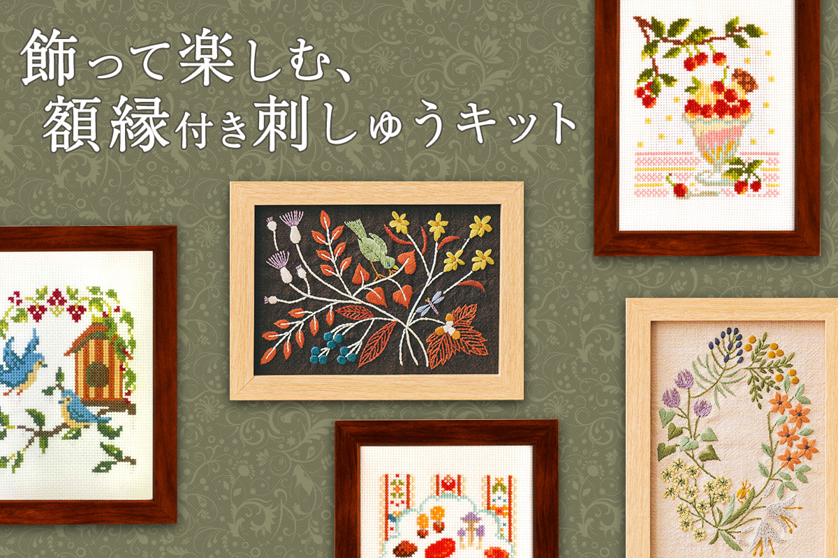 糸を交差させながら刺し進めるクロスステッチで作成します。刺しゅうが終わったら厚紙にテープで張り、付属の額に入れて飾りましょう。制作時間の目安は9時間程度です。