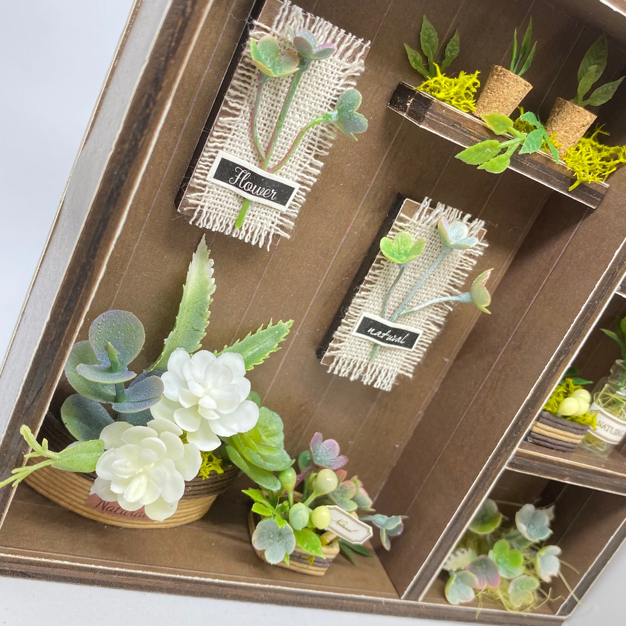 厚さも約3cmほどでコンパクトに保管も出来ます。繊細でリアルな植物パーツがふんだんに使用されています。