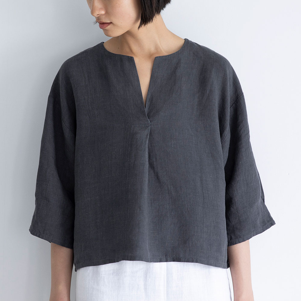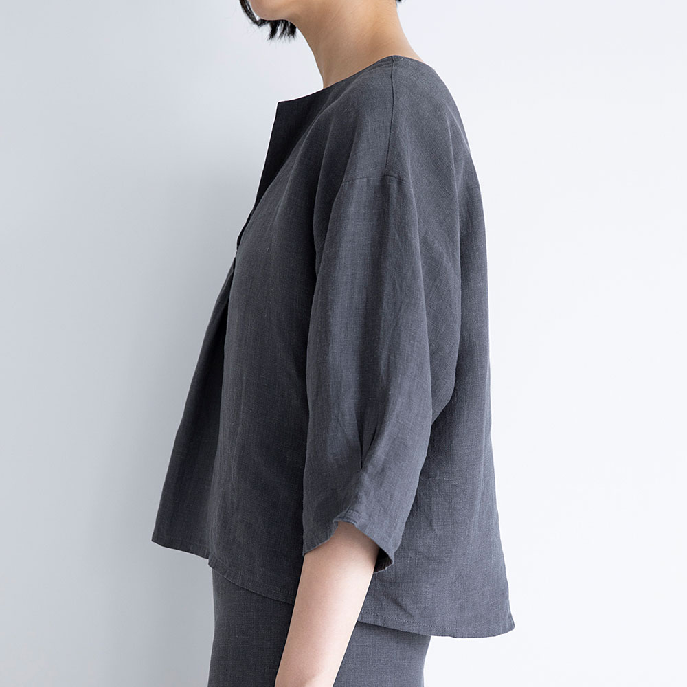 前中心と袖にタックを入れた、1枚着るだけできまるプルオーバー。