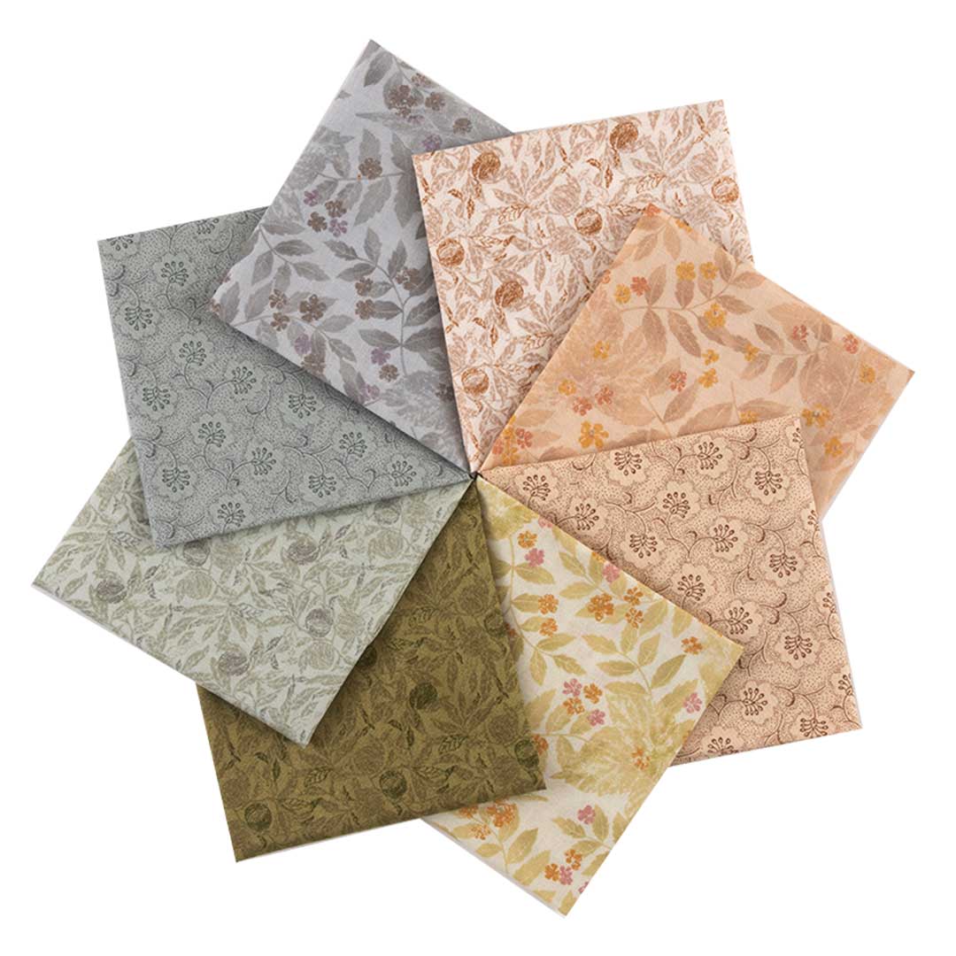 リーフや木の実をトープカラーで描いた落ち着いた色合いのカットクロスセットです。