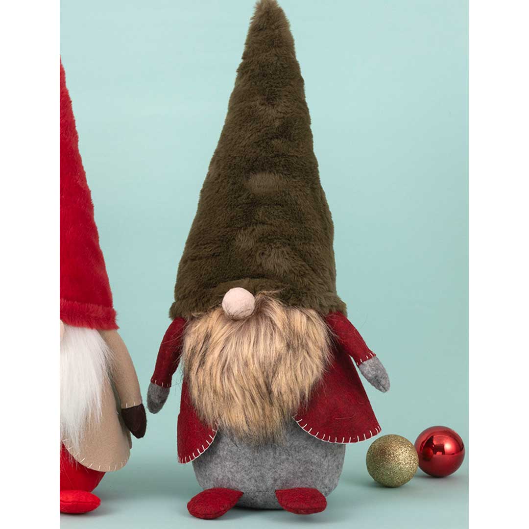 【完成品】帽子の先まで42センチと大きめサイズ。ふかふかの帽子に長いひげ、コート姿が可愛い北欧の妖精のドール2色です。冬のインテリアとしても長く楽しめそう。