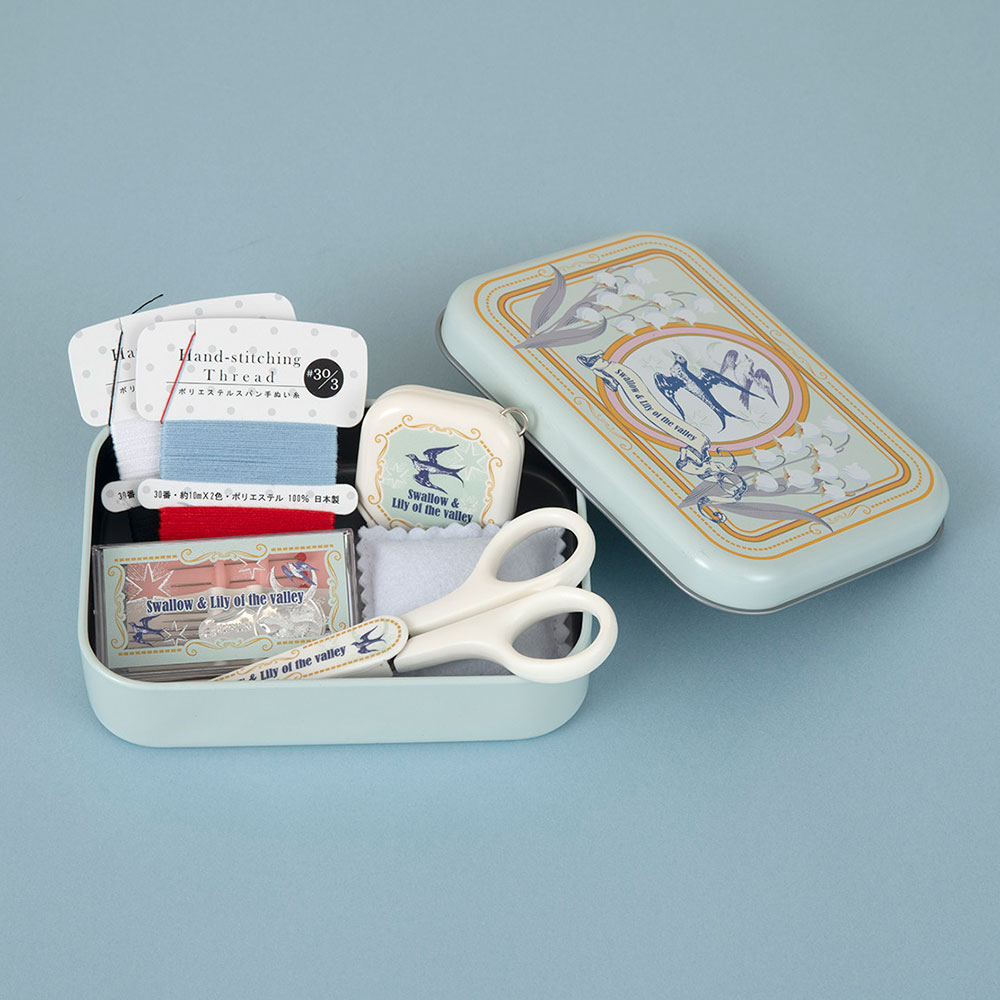 ミニブリキ缶ソーイングセット[ツバメとスズラン]