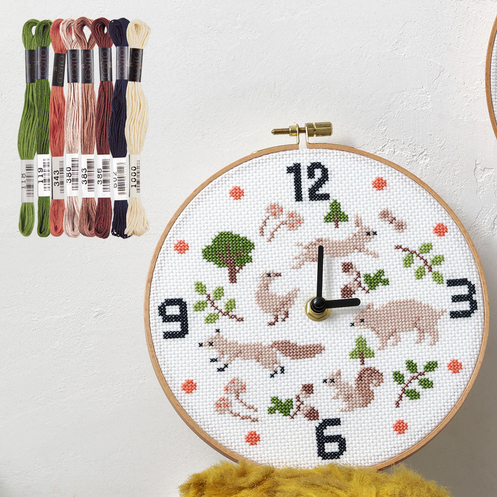 「動物の刺しゅう枠時計」糸セット