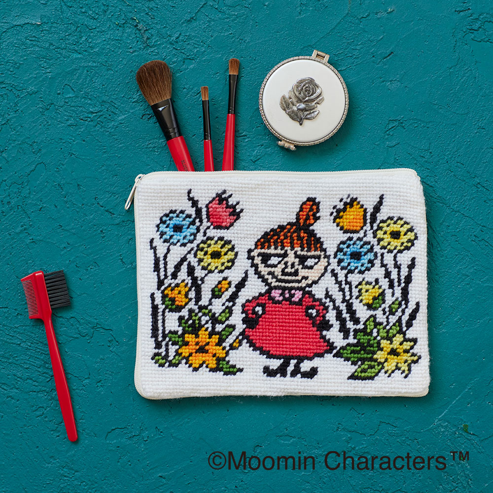 片面がメッシュキャンバスになった縫製済みのポーチにステッチをするので、仕立ての手間がないのもポイント。