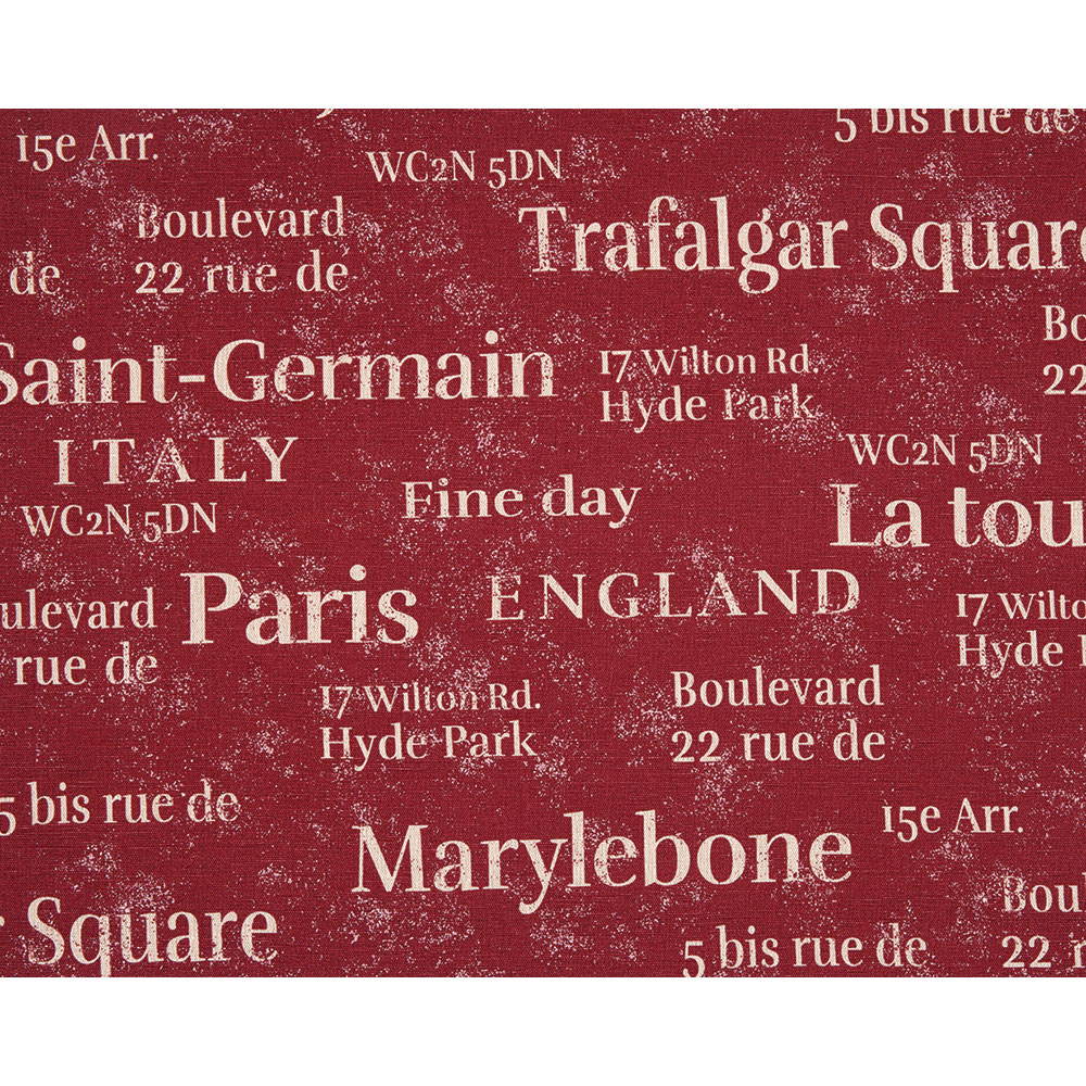 [広幅綿麻キャンバス] 広幅でやや厚手の綿麻地に英字をプリント。国や都市名などがランダムに配されています。広幅なのでインテリアにもおすすめです。