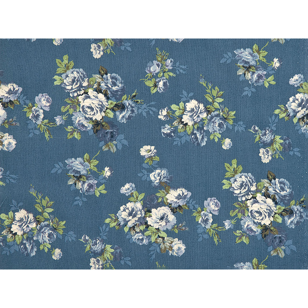 【ローン】濃いブルー地に同色系のバラをプリントした、落ち着いた雰囲気の薄手のローン地です。シックな スカートなどにも。