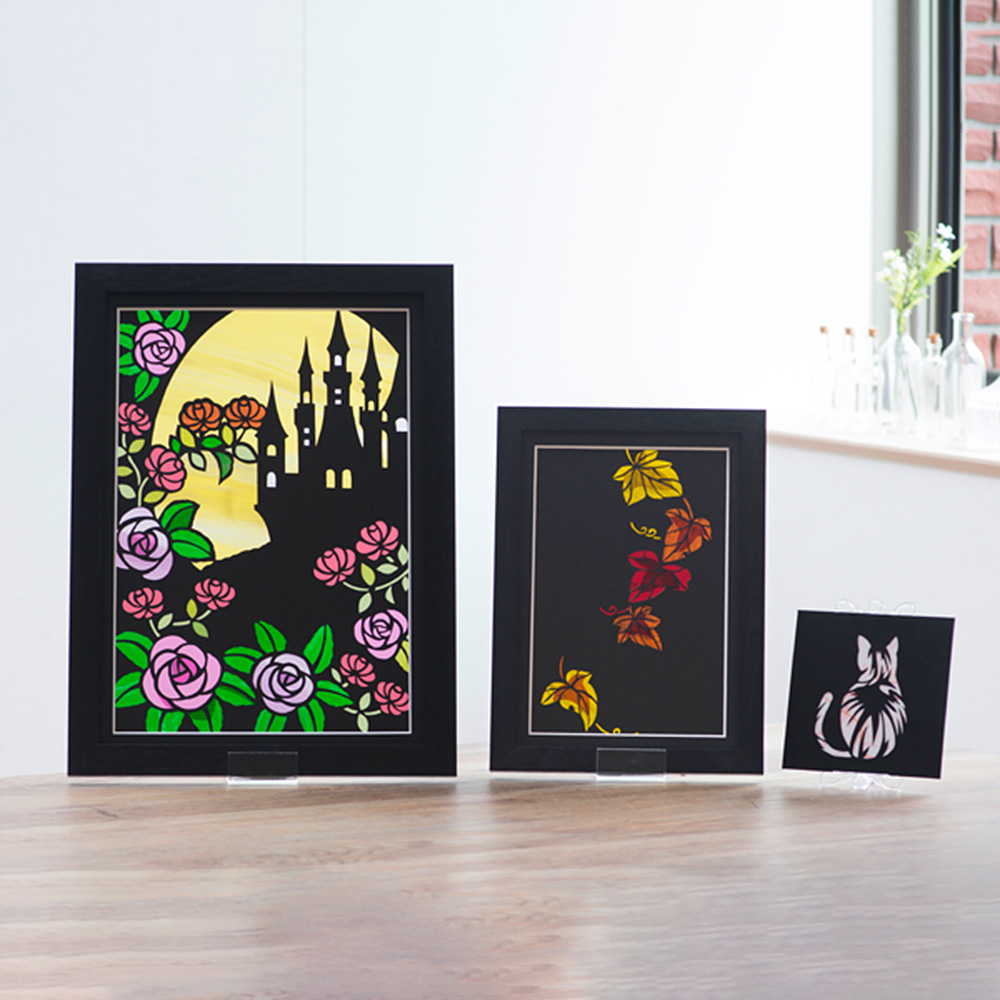 切り絵の世界を、特殊フィルムを使って彩色し、作品づくりを楽しめるクラフト「シルエットアート」。