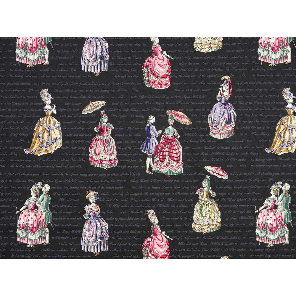 英字の地模様の上に、優美な貴婦人を描いたシックなデザイン。。レースと合わせてヴィクトリアンな作品に。