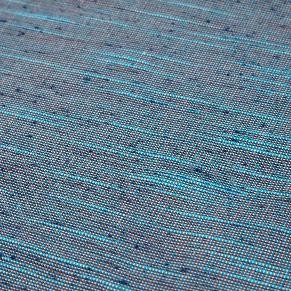 くくり染した経糸と緯糸を合わせた複雑な柄の美しさが特徴の久留米絣。伝統を守りつつ、モダンな印象を持つ坂田織物の久留米絣をご紹介。発色のいいきれいな色で、縞柄との相性がよい布です。スラブ入りの鮮やかな水色です。スカートやエプロンなどにも。