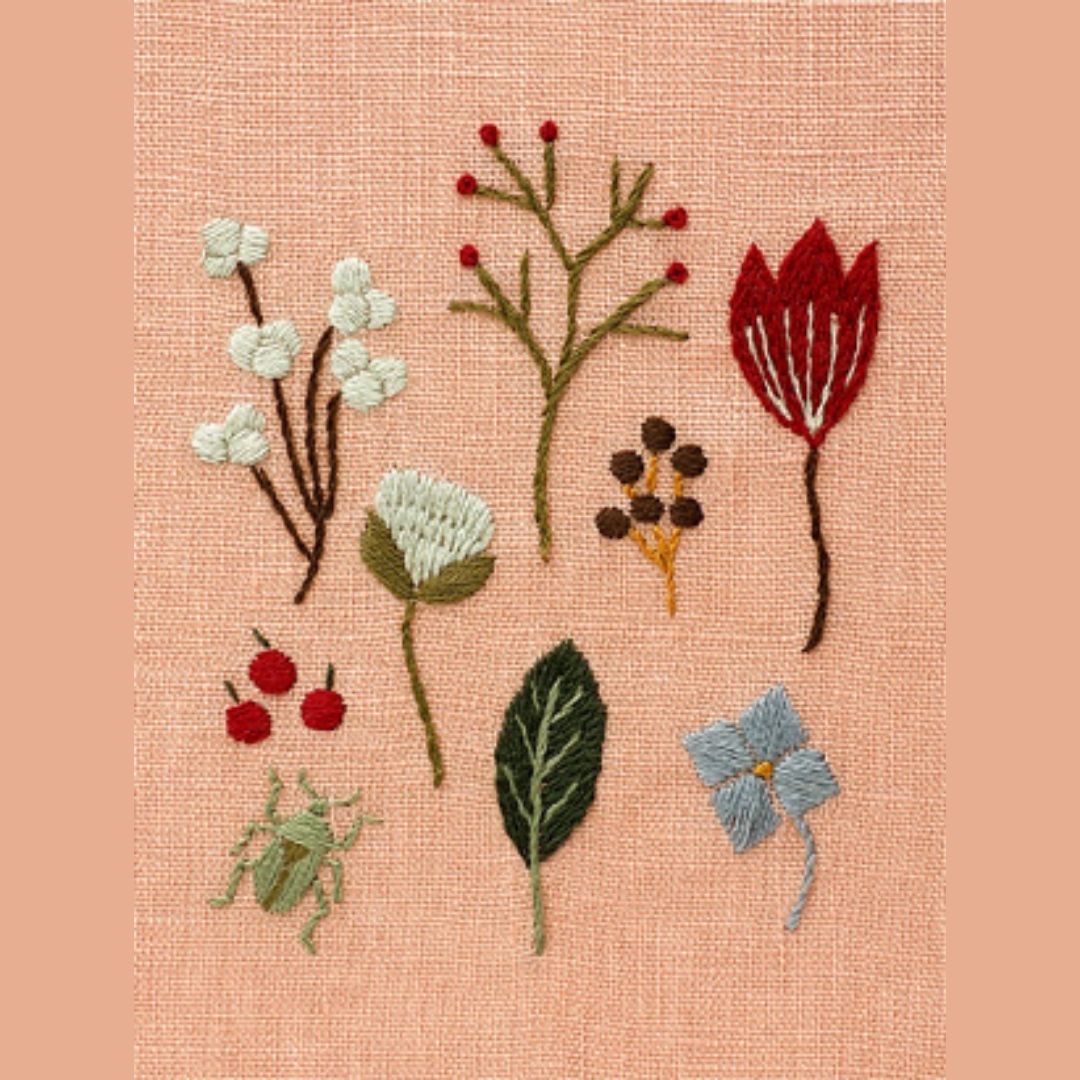 素朴で優しい色合いが魅力的! マカベアリスさんデザインの、季節のモチーフ刺しゅうキットです。
