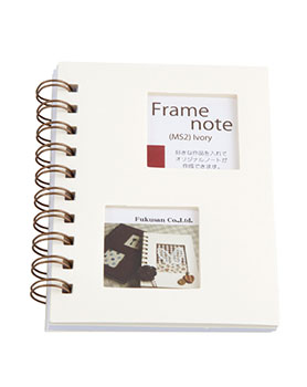 表紙の2か所の窓部分にカード、写真、布、刺しゅう、押し花作品入れ、オリジナルノートづくりを楽しめます。