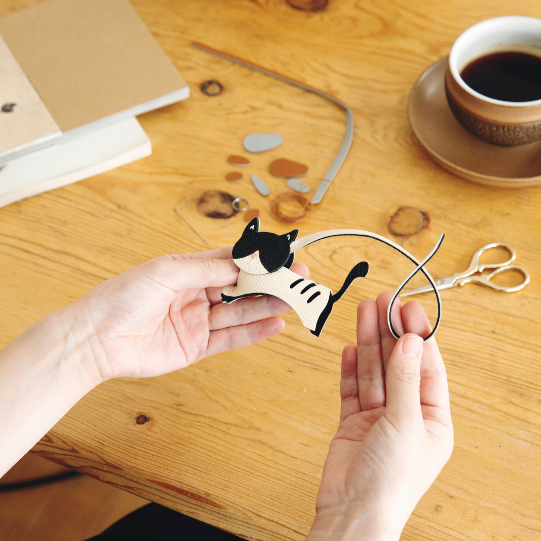 本革で楽しむおしゃれな動物チャーム ねこ・黒